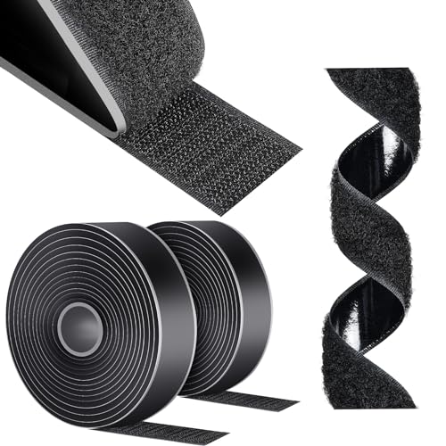 Vinabo Scratch Autocollant Double Face 8 M X 20 MM, Hook Loop Rubans Ruban AdhéSif Puissant à Crochets Et Boucles pour La Couture (Noir) (Lot de 2)