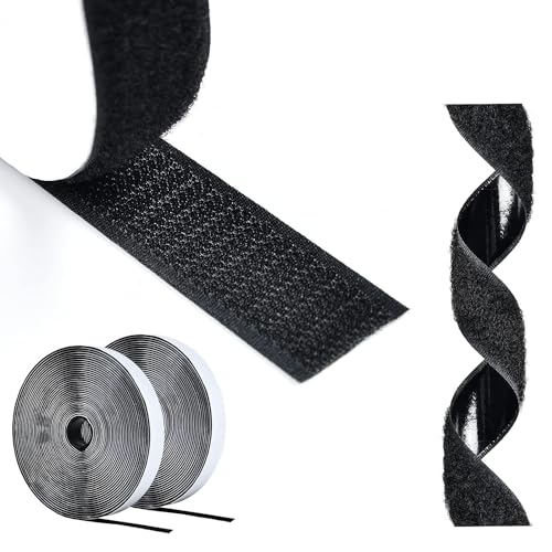 Vinabo Scratch Autocollant Double Face 5 M X 20 MM, Hook Loop Rubans Ruban AdhéSif Puissant à Crochets Et Boucles pour La Couture (Noir)