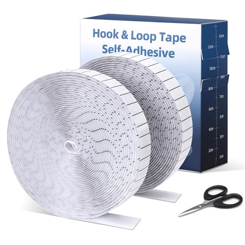 JEXNOVASHOP-15M x 20mm Scratch Autocollant Double Face, Autocollant Scratch Bande Autoadhésif, Rubans Adhésive Hook & Loop pour Tous Les Types D'installations Cadre Photo
