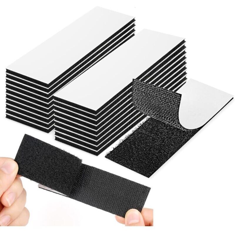 Scratch Autocollant Double Face, Bande Agrippantes Adhésives Extra Fort 20 pièces Rectangle Adhésif Double Face Noir Puissant Réutilisable 3 x 10cm