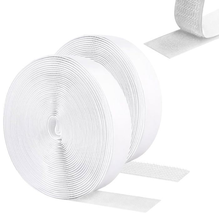 Scratch Autocollant Double Face 12M, Adhésif Puissant, Bande Agrippantes Polyvalent, Hook Loop Rubans Pour Ménage, Bricolage Et l'Artisanat - Blanc