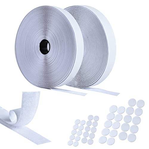 Fesoar Scratch Autocollant Double Face, Rubans Adhésifs, Bande Agrippantes Adhésives, Hook Loop Bande pour Tous Les Types D'installations Cadre Photo (Blanc, 20 mm x 8 m)