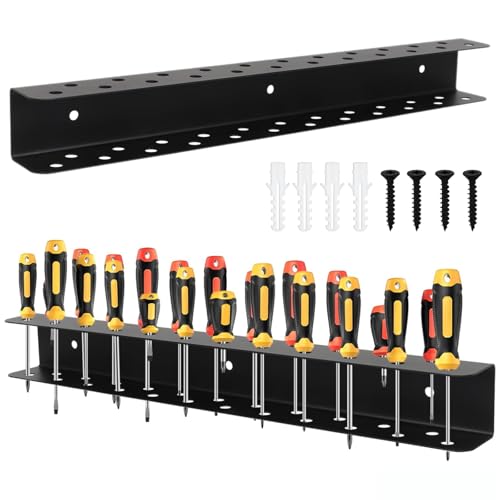 VOBOR 2 in 1 Porte Outils Mural 40cm, Trou ∅ 7.7/15.5mm, Support Tournevis Porte Pinces avec Vis et Tubes D'expansion, pour Garage, Atelier et Salle À Outils, Modèle C