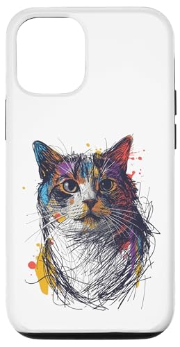Scribble Cat Croquis Abstrait Art Minimaliste Chat Coque pour iPhone 13 Pro