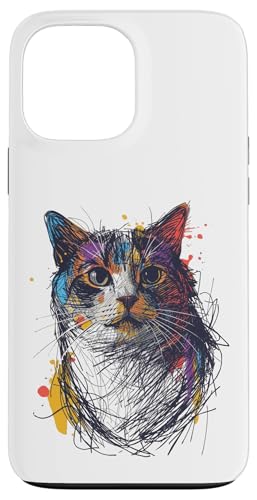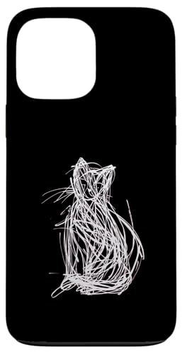 Scribble Cat Croquis Abstrait Art Minimaliste Chat Coque pour iPhone 13 Pro Max