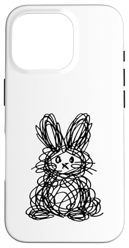 Dessin de Lapin de Pâques Abstrait Scribble Line Art Coque pour iPhone 16 Pro