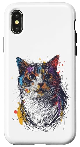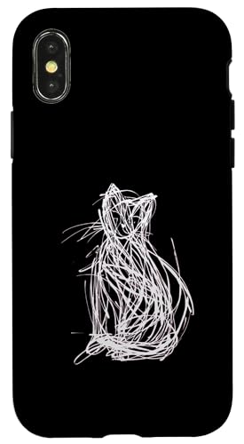 Scribble Cat Croquis Abstrait Art Minimaliste Chat Coque pour iPhone X/XS