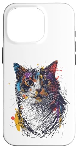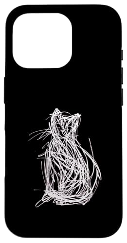 Scribble Cat Croquis Abstrait Art Minimaliste Chat Coque pour iPhone 16 Pro