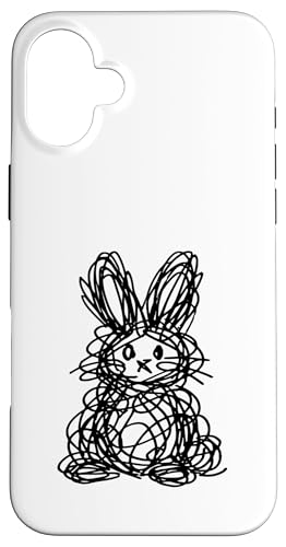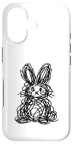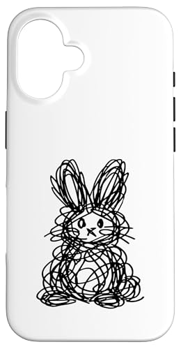 Dessin de Lapin de Pâques Abstrait Scribble Line Art Coque pour iPhone 16 Plus