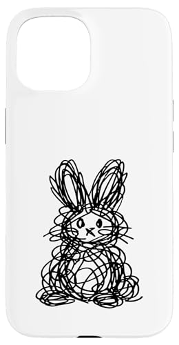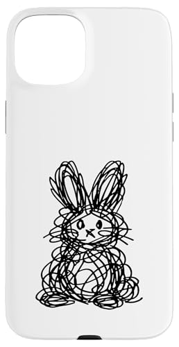 Dessin de Lapin de Pâques Abstrait Scribble Line Art Coque pour iPhone 15 Plus