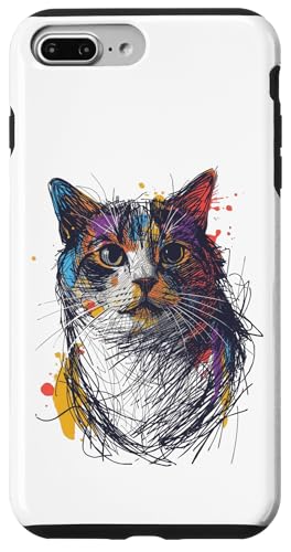 Scribble Cat Croquis Abstrait Art Minimaliste Chat Coque pour iPhone 7 Plus/8 Plus