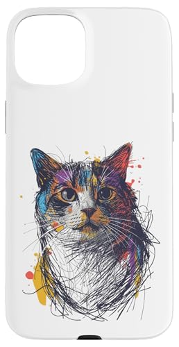 Scribble Cat Croquis Abstrait Art Minimaliste Chat Coque pour iPhone 15 Plus