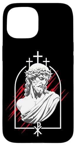 Sculpture de Foi chrétienne Neo Renaissance Buste de Jésus Coque pour iPhone 15 Pro Max