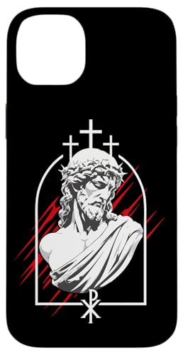 Sculpture de Foi chrétienne Neo Renaissance Buste de Jésus Coque pour iPhone 14 Plus