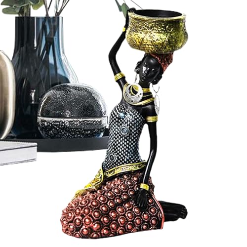 Figurine de buste de femme africaine – Sculpture décorative, plateau de rangement | Décoration de table d'étagère de salon, décoration culturelle, décoration artistique, décoration d'intérieur, pièce