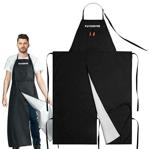 Potterhyme Tablier de poterie imperméable à couverture complète, jambes fendues, tablier 100% polyester pour homme et femme, pour lancer des roues en céramique, tournage sur bois, peinture, sculpture