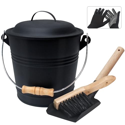 Relaxdays Seau à Cendres, avec Couvercle, 12 litres, Anse, pour la cheminée ou Encore Le poêle, Noir