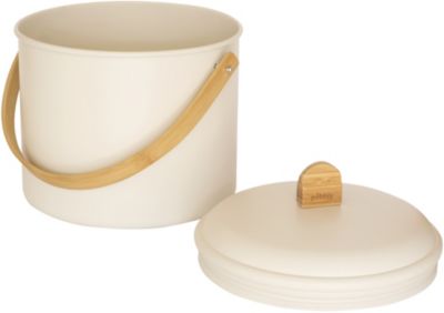 Pebbly - Seau à Compost d'intérieur en Métal - 7 L - avec Grande Anse en Bambou Naturel et Filtre Charbon Amovible - Couleur Crème - Se manipule d'une Seule Main, Facile à Porter au composteur