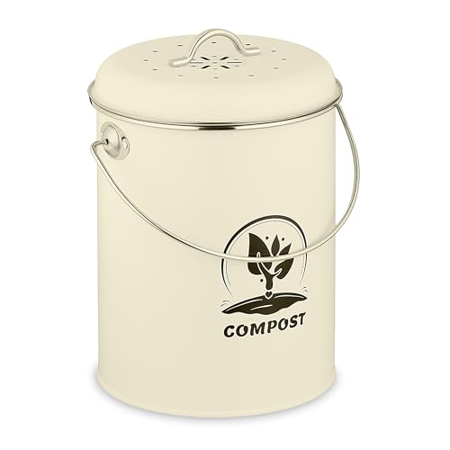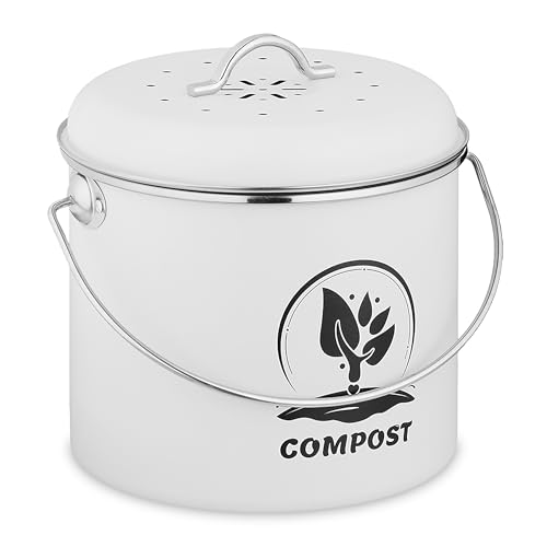 Composteur de Cuisine ENLOY, bac à Compost de comptoir avec Couvercle, pour déchets Alimentaires de Cuisine, Seau à Compost inodore et antirouille avec revêtement en Poudre, 1,3 Gallon, Blanc