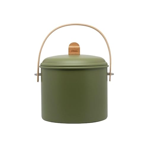 PEBBLY - Seau à Compost d'Intérieur en Acier et Anse en Bambou - 3,5 litres - Ø 19 x 21,5 cm - Filtre Anti-Odeur en Charbon Inclus, Seau Élégant, Durable, Léger et Résistant, sans Risque de Fuite