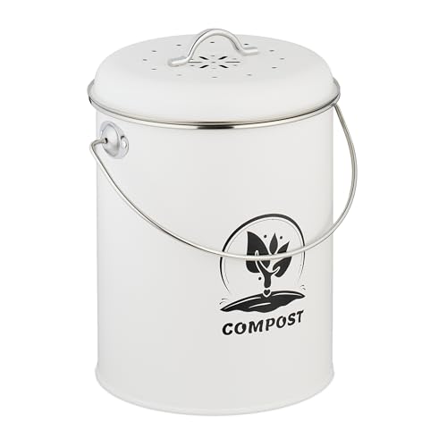 Relaxdays Seau à Compost 3,5L avec filtres à Charbon, Couvercle, Anse, Blanc, 20x22x19 cm