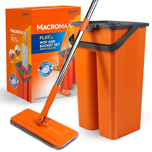 Macromax Aqua Revolution System Ensemble serpillère Plate et Seau avec capacité de 8 l, Nettoyage Humide et Sec, têtes de Balai lavables en Microfibre et pièces de Rechange, poignée pivotante à 180°