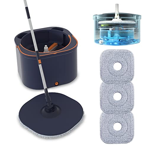 Ensemble serpillère Plate rotative et Seau avec essoreuse, Auto-séparation de l’Eau Propre et Sale, pour Bois Dur, stratifié, carrelage, Sol, Utilisation Humide et sèche, Bleu Marine