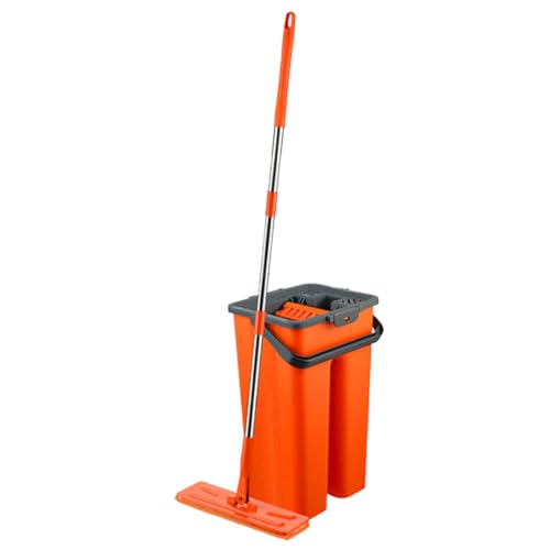 JOYMOOP Ensemble serpillère et seau avec essoreuse, serpillères plates pour le nettoyage du sol, nettoyeur de mur avec long manche, balai à franges en bois dur avec 4 tampons en microfibre