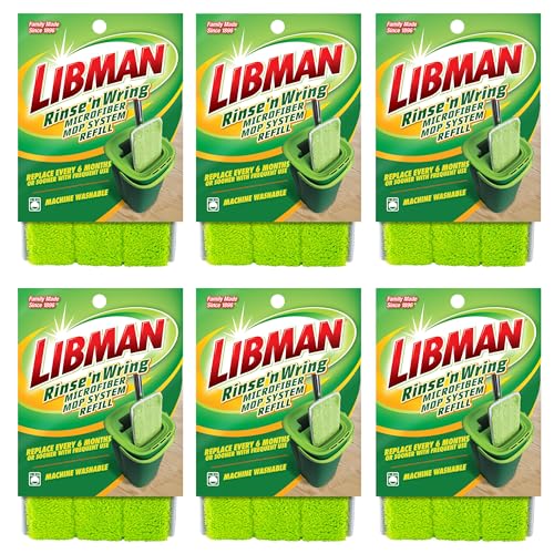 Libman Rinse 'n Wring Recharge pour serpillère et Seau | Serpillère en Microfibre | Nettoyant pour sols en Bois Dur | Balai Humide et Sec | 6 tampons de Recharge en Microfibre au Total