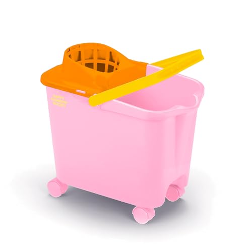 Happy Rainbow Seau de serpillère avec essoreur et roulettes pivotantes recyclées 14 l Durable Idéal pour Le Nettoyage des sols et la Maison, Rose