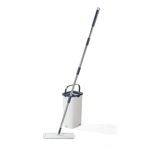 JOYMOOP – Serpillère plate et seau avec essoreur, avec 5 lingettes en microfibre lavables, utilisation humide et sèche, système de nettoyage du sol