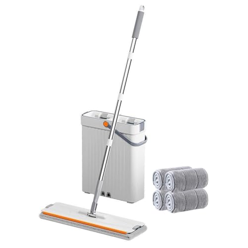 Jelymark Serpillère Plate et Seau avec essoreuse, sépare l'eau Sale et Propre, 3 Compartiments pour Utilisation Humide et sèche, Balai Mains Libres pour Le Nettoyage du Sol, 4 serpillères