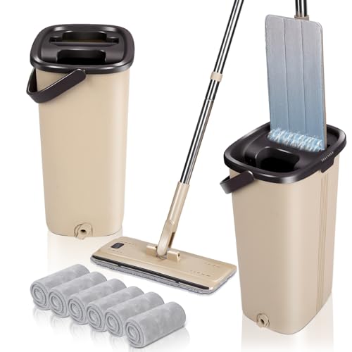 GkgWuxf Balai plat de nettoyage pour sol – Serpillère à presser et seau – Séparation sèche et humide – Ensemble serpillère plate et seau sans contact avec le sol