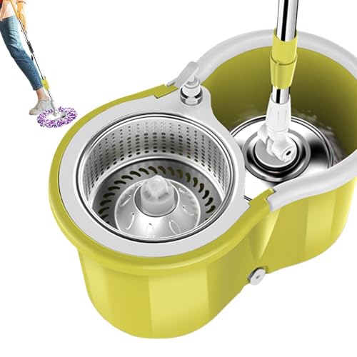 Serpillère avec seau et essoreur, serpillère avec seau – Kit de serpillère et seau rotatif à 360 degrés, système de nettoyage pour le sol – Système de nettoyage des sols polyvalent, ensemble seau de