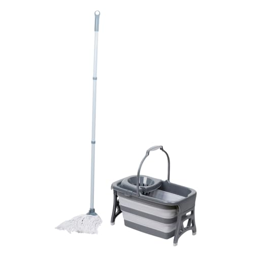 Dirt Devil Serpillière avec Seau - Seau Pliable 18L avec Essoreuse - Tête Amovible - Kit Balai Serpillère pour Nettoyage Sol Durs