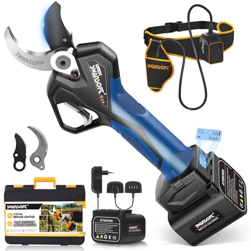 SWANSOFT PRU40 Secateur Electrique Professionnel, 40mm 21V 1050W 4Ahx2 Sécateur Électrique Sans Fil Avec Batterie Secateur Electrique sans Fil pour Jardinage, bleu foncé