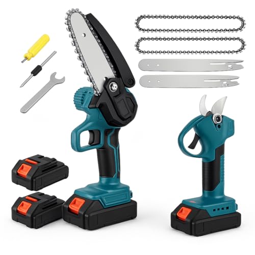 Sécateur Électrique sans Fil 40mm: Secateur electrique avec 2 * 3000 mAh batterie, Sécateur de Jardin Antirouille SK5 Avec Verrouillage de Sécurité (Bleu)