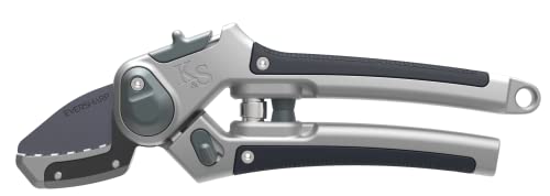 EZ KUT Sécateur Professionnel à Cliquet et à Enclume pour le Jardinage. Sécateur à Main pour Couper des Branches Épaisses jusqu’à 3 cm de Diamètre. Outil Durable avec Lame en Acier SK5 Antiadhésive.