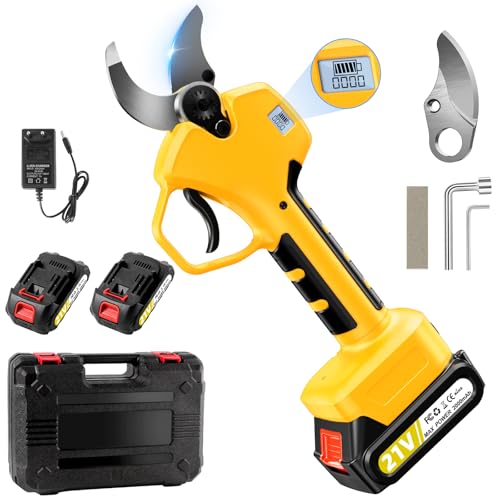 Sécateur Électrique Sans Fil, Sécateur Professionnel 30-40 mm Avec Ecran LCD, 2 * 2000 mAh 21V Batteries, Remplaçables Lames SK7, Pour Jardinage, Verger, Ferme
