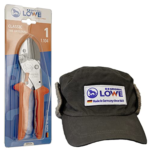 Original LÖWE 1 sécateur professionnel à enclume 1.104 avec lame en acier inoxydable et revêtement antiadhésif et bonnet d'hiver à doublure chaude, idéal pour le jardinage en hiver