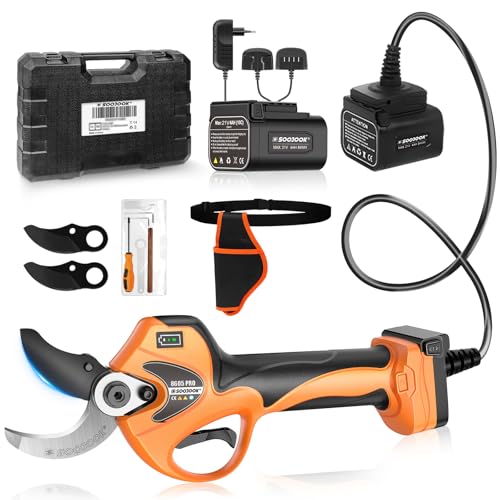 SOOJOOK Sécateur Électrique Professionnel, 40mm Progressive, 2x 21V 4A Batteries, 1050W, Bypass Moderne, Orange