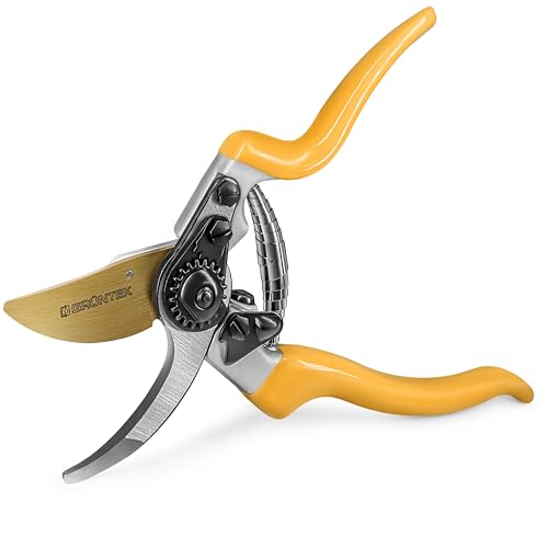 GRÜNTEK Sécateur de Jardin Professionnel Ciseaux Jardinage Forgé. Cisaille Lame franche en Acier et Titane. Coupe Bypass. Poignées Ergonomiques