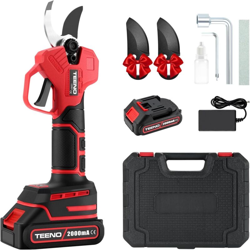 Sécateur Électrique Sans Fil 21V, 2x2000 mAh Batteries Professionnel Sécateur Lame Convient Pour Les Jardins Les Branches - Teeno