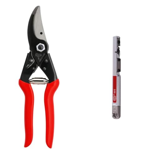 FELCO 8 Sécateur Professionnel Bypass 25 mm pour Main Droite avec Poignée Ergonomique + Aiguiseur Multifonction FELCO 905 pour Coupe Précise et Entretien Durable