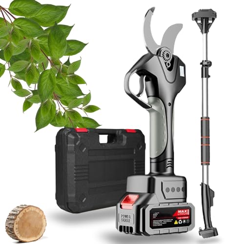 Sécateur Électrique sans Fil avec avec Perche télescopique, Batterie 21V 4000mAH, 45mm Secateur à Batterie Professionnel Secateur de Jardin Moteur sans Balais pour Jardinage, Vigne, Arbre Fruitier
