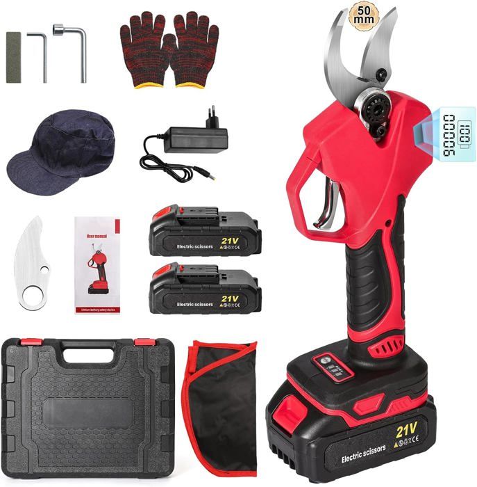Sécateur Électrique Sans Fil Brushless21V50mm Secateur Electrique Professionnel 5.0Ah 2*BatteriesProfessionnel Sécateur Lame