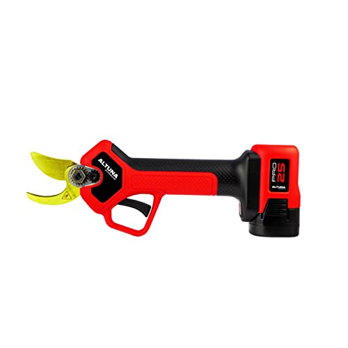 Sécateur sans Fil - Modèle AB25 TITANIUM - Coupe Bypass Progressive pour un travail de précision - Puissance 500W et 2 Batteries 16,8V-2,5 Ah - Lame en Titane forgé - Avec Boîte - Altuna