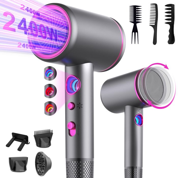 Seche cheveux ionique professionnel avec moteur AC 2400 W 4en1 diffuseur de cheveux bouton chaud/froid3niveaux chauffage/vitesse