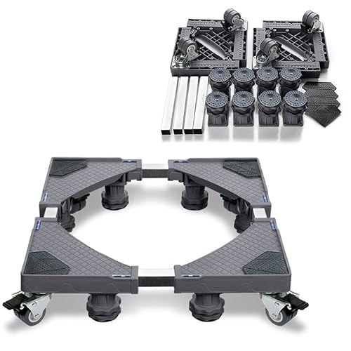 YUENFONG Base réglable pour machine à laver, sèche-linge et réfrigérateur, longueur et largeur 45-75 cm, hauteur 10-13 cm, 8 pieds + 4 roues, gris