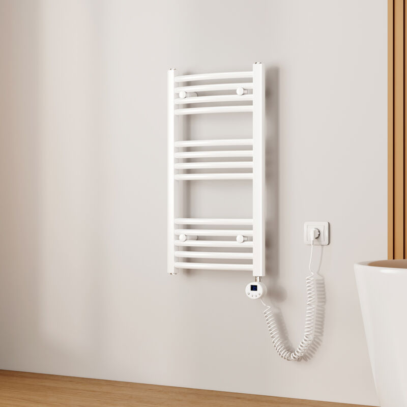 EMKE Sèche-Serviette électrique pour Salle de Bain 75 x 40 cm, Radiateur courbé avec WiFi Thermostat, Chauffe-Serviettes électrique,Support Porte-Serviettes électrique, Blanc,250 Watts